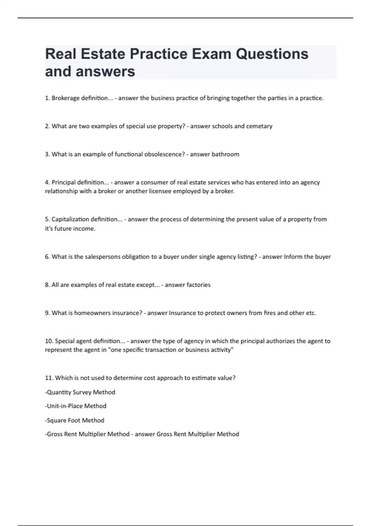 Real Estate Practice Exam Questions and answers