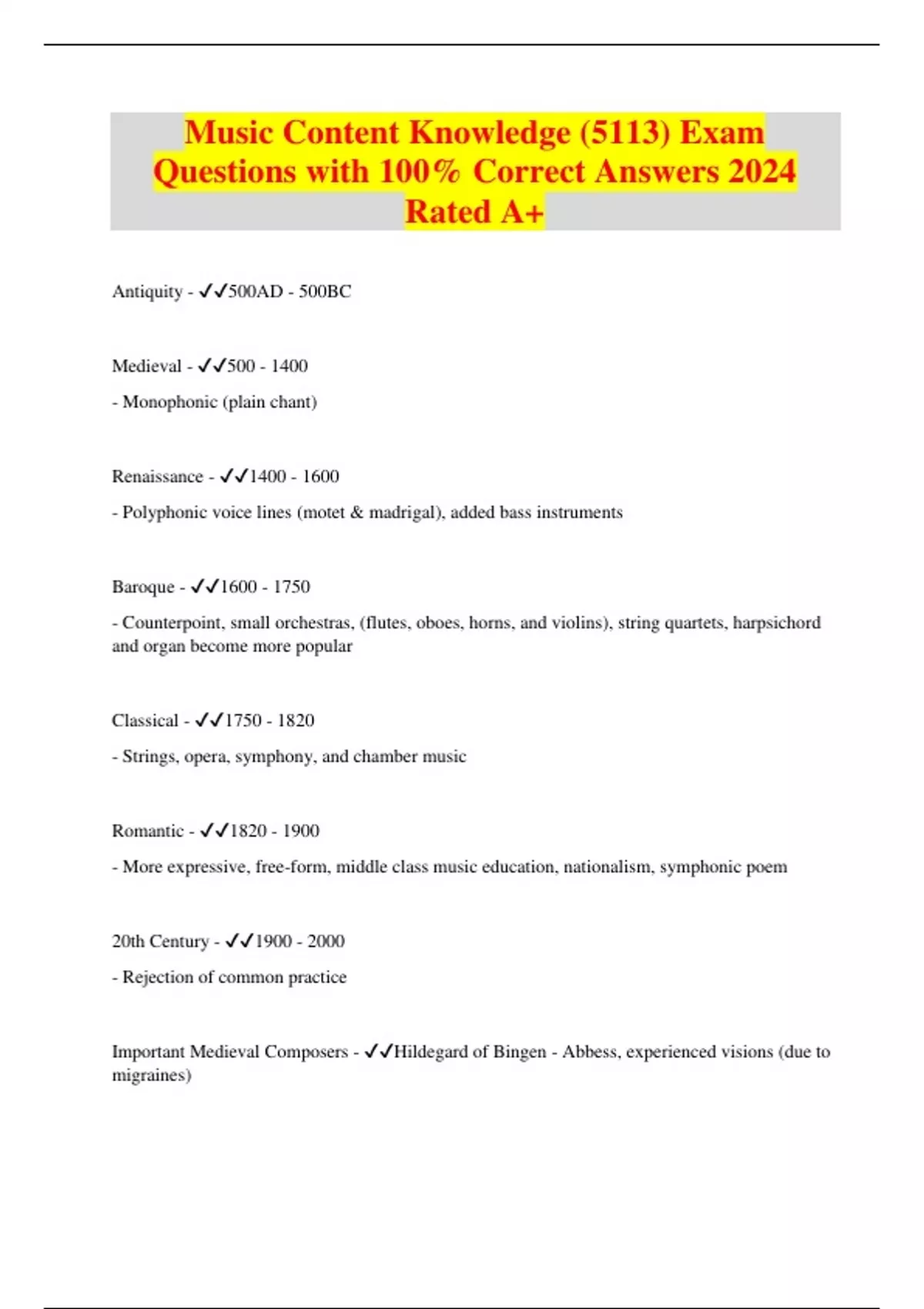 Music Content Knowledge (5113) Exam Questions with 100% Correct Answers 2024 Rated A+