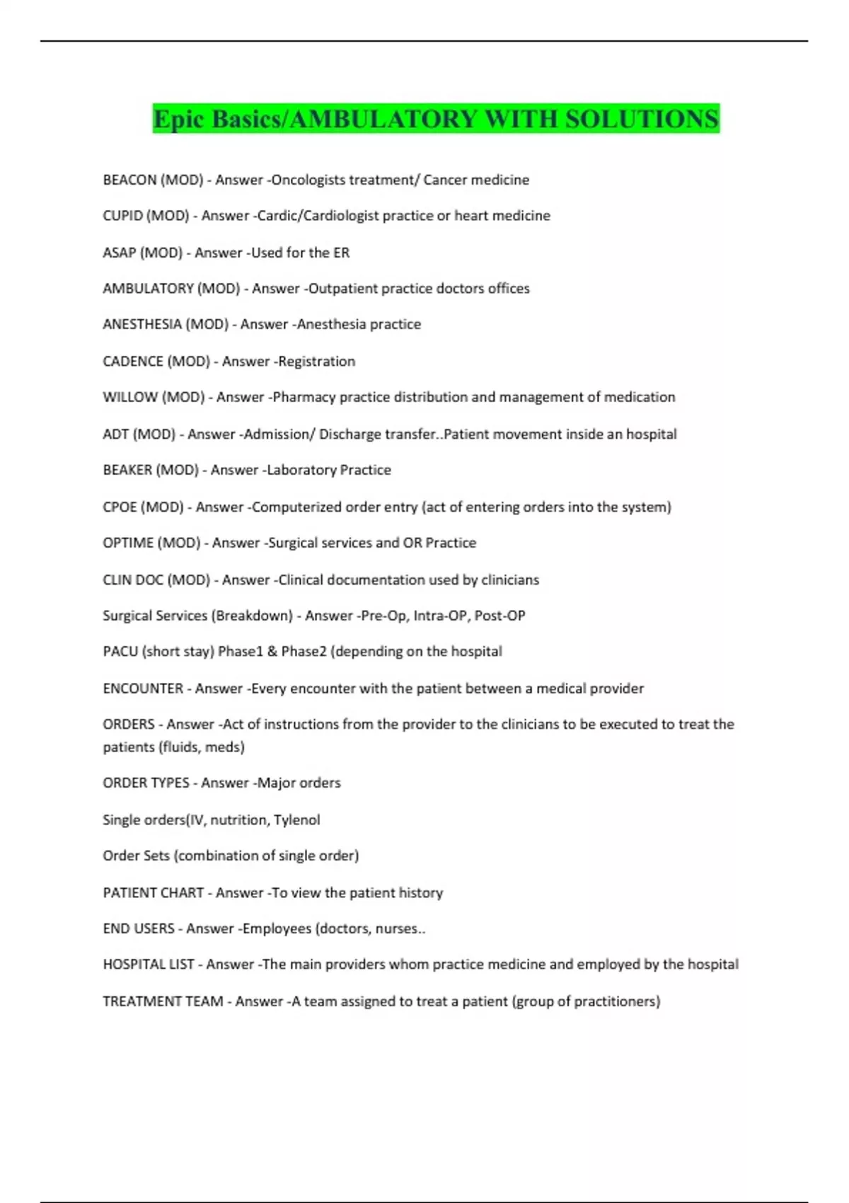 Epic Basics/AMBULATORY WITH SOLUTIONS 2024