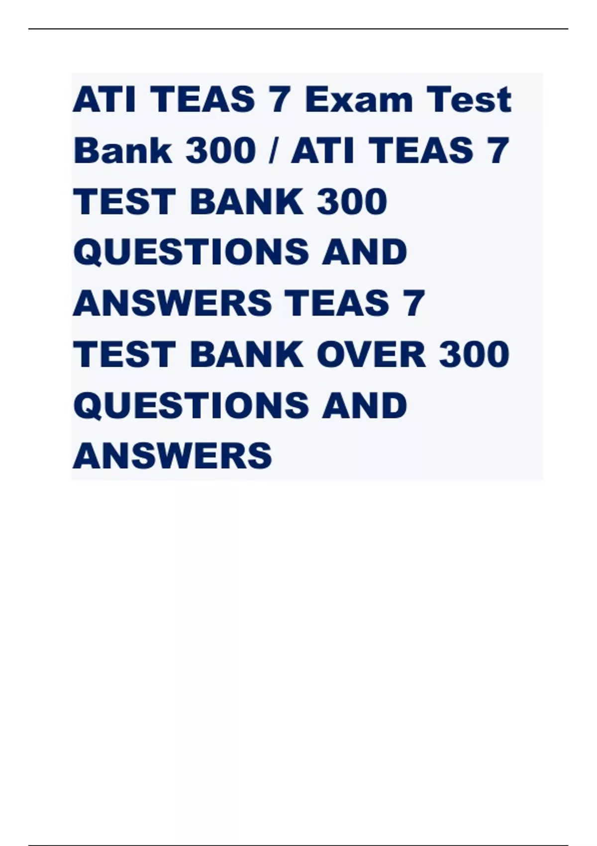 ATI TEAS 7 Exam Test Bank 300/ ATI TEAS 7 TEST BANK 300 QUESTIONS AND ANSWERS TEAS 7 TEST BANK OVER 300 QUESTIONS AND ANSWERS