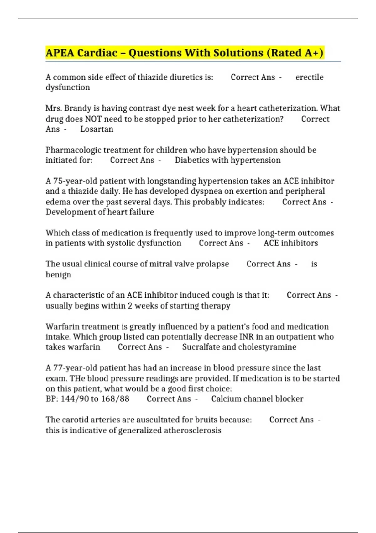 APEA Cardiac – Questions With Solutions (Rated A+)