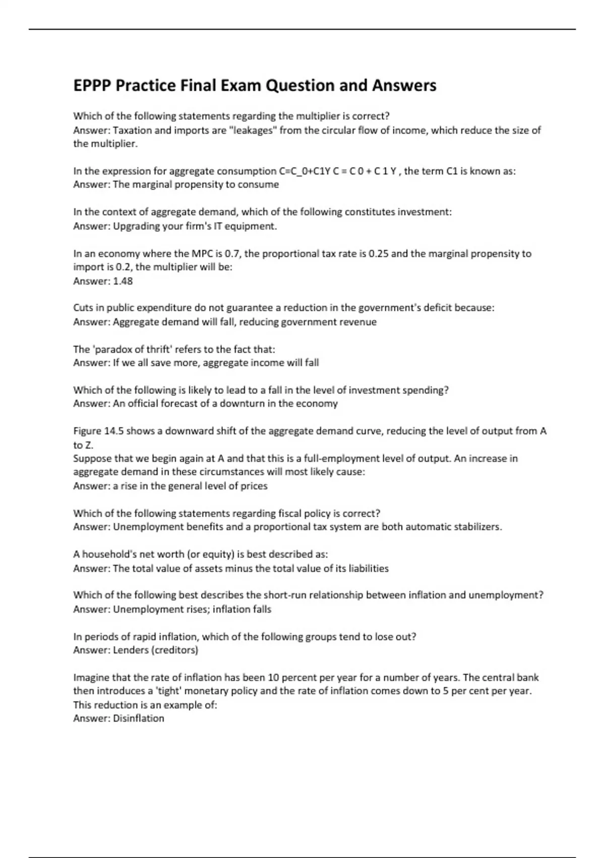 eppp practice final exam question and answers