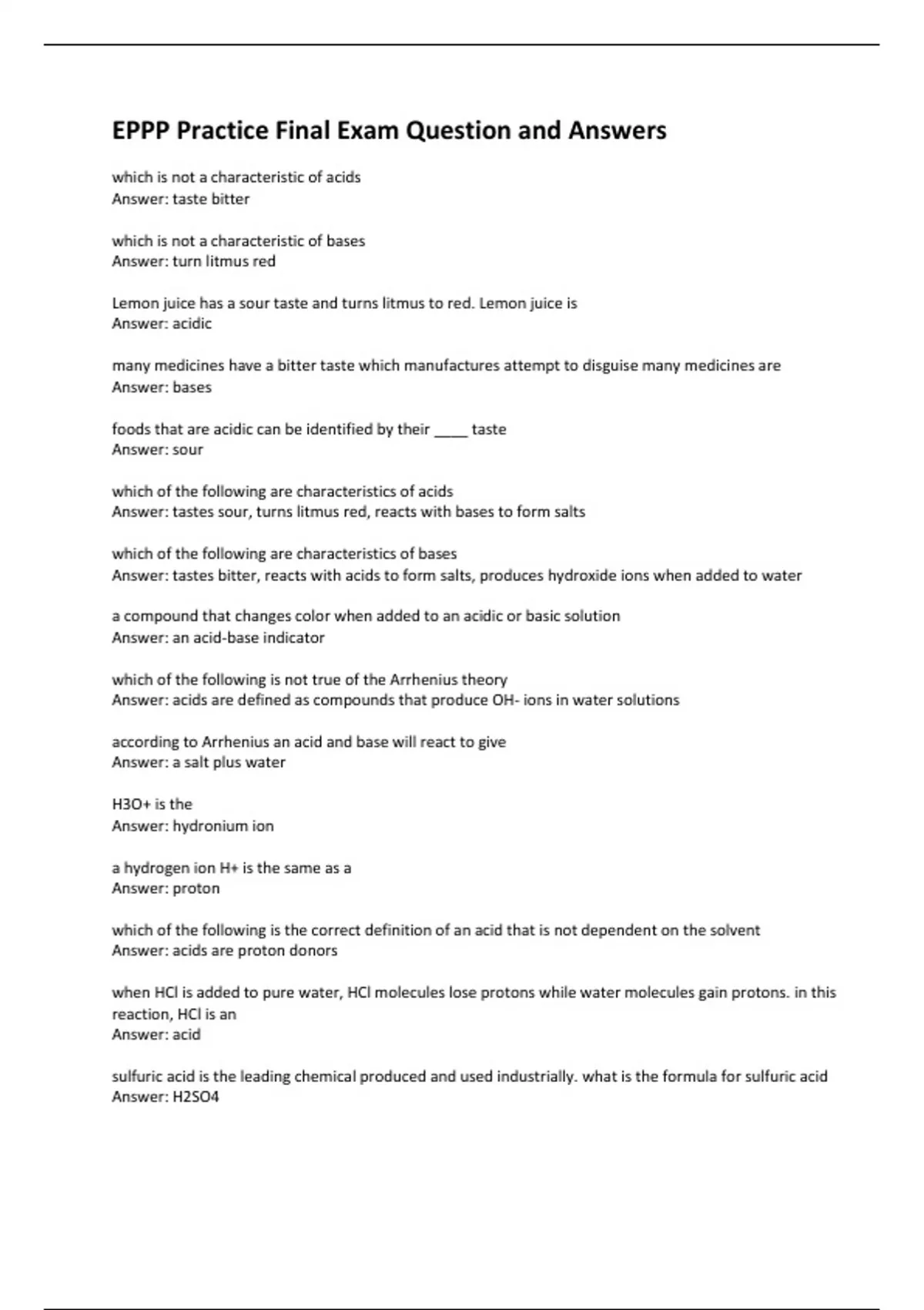 eppp practice final exam question and answers