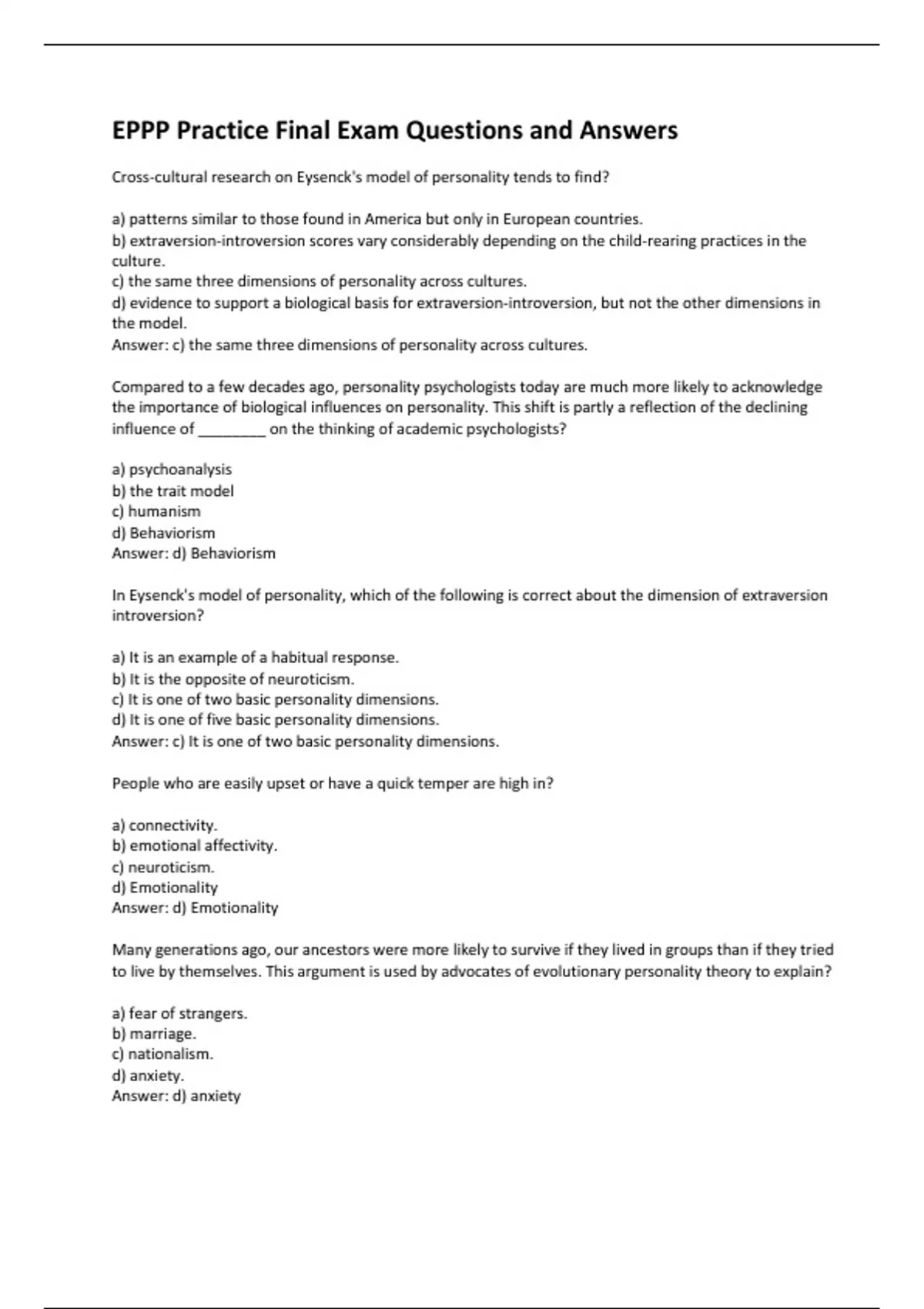 EPPP Practice Final Exam Questions and Answers EPPP Practice Final Exam EPPP Practice test Questions and Answers EPPP practice test EPPP Exam Secrets Study Guide EPPP Exam Study set