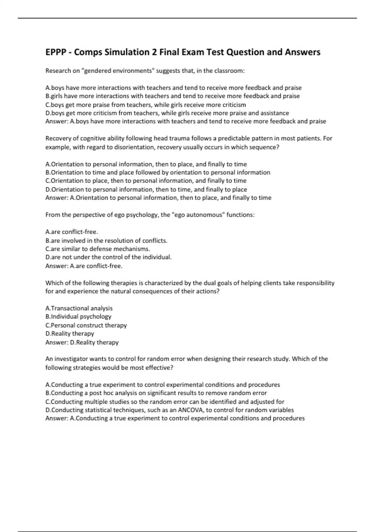 EPPP - Comps Simulation 2 Final Exam Test Question and Answers EPPP Practice Final Exam EPPP Practice test Questions and Answers EPPP practice test EPPP Exam Secrets Study Guide EPPP Exam Study set