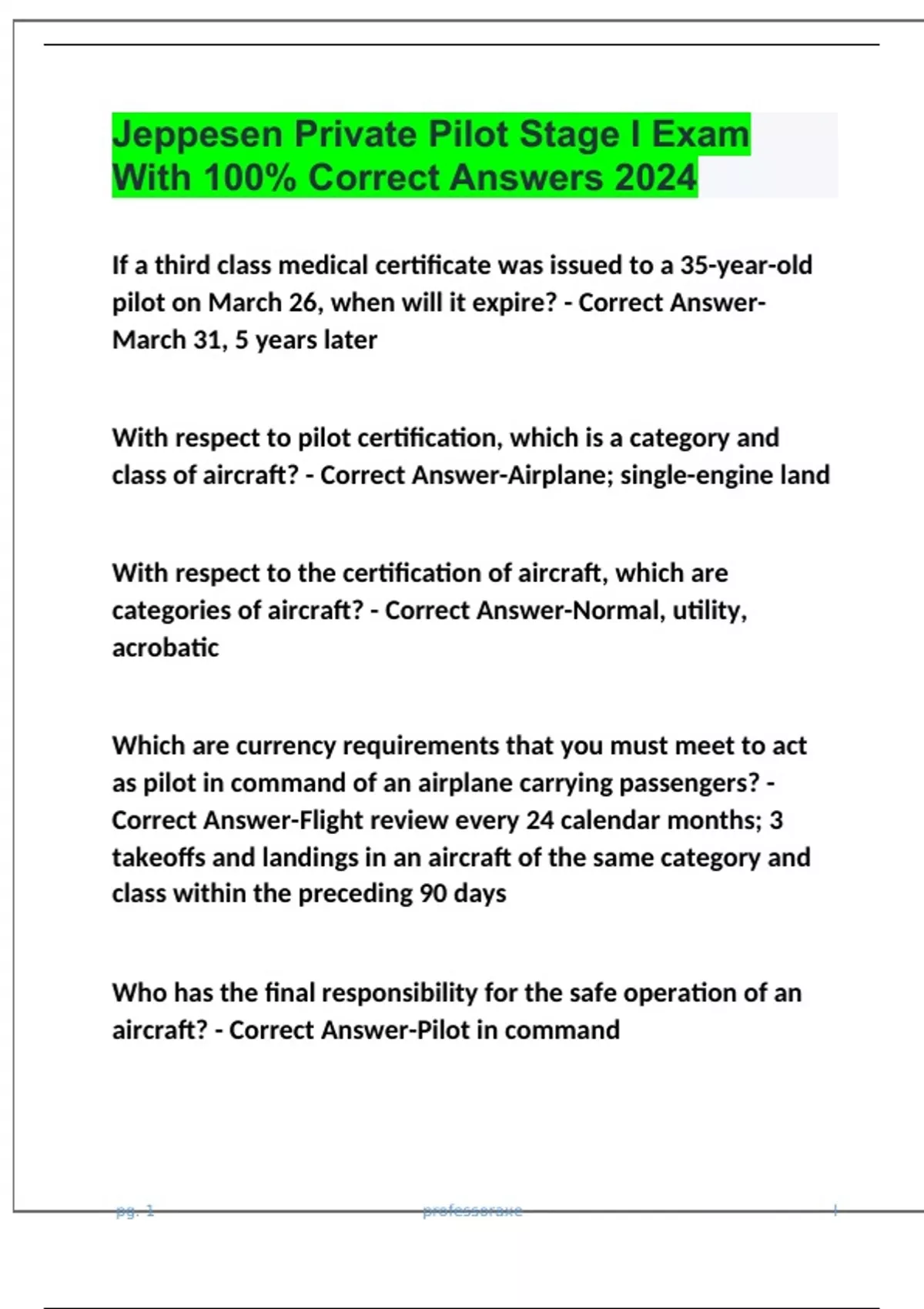Jeppesen Private Pilot Stage I Exam With 100% Correct Answers 2024