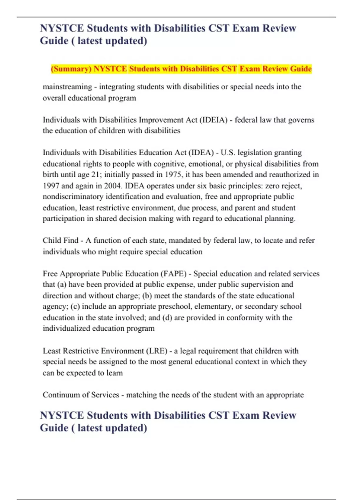 Summary NYSTCE Students with Disabilities CST Exam Review Guide ( latest updated)
