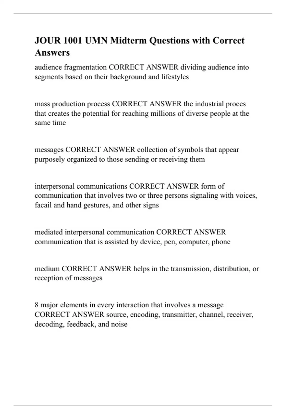 JOUR 1001 UMN Midterm Questions with Correct Answers