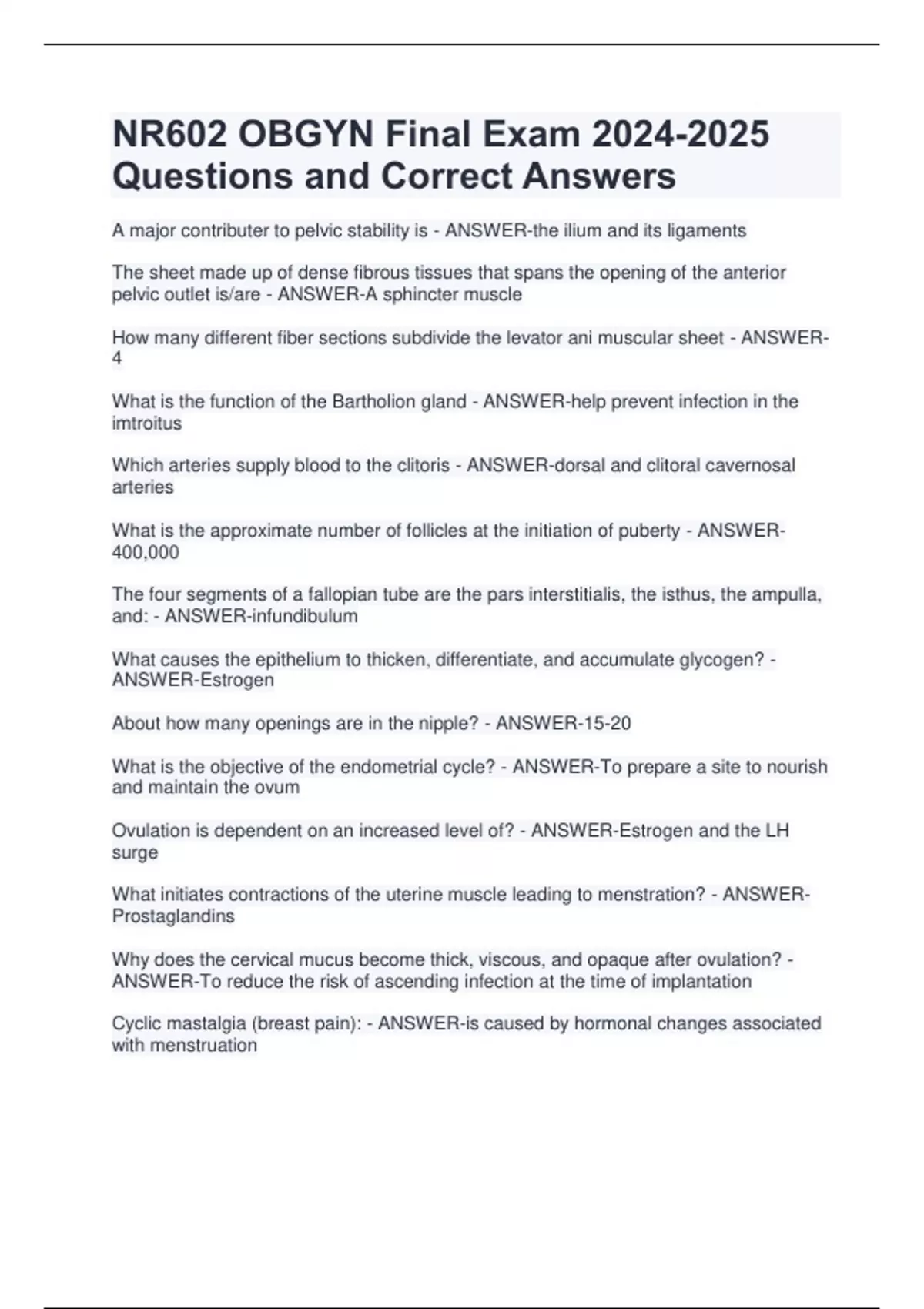 NR602 OBGYN Final Exam Questions and Correct Answers