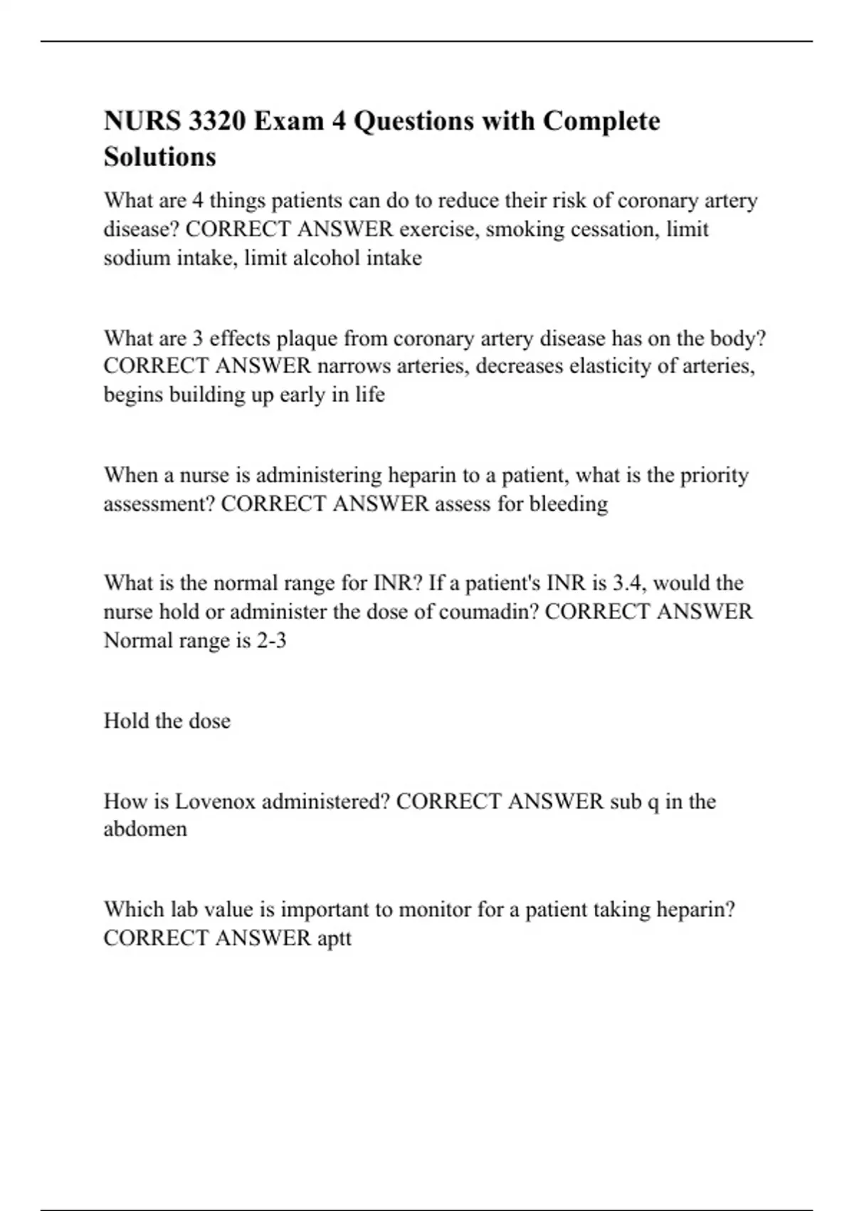 NURS 3320 Exam 4 Questions with Complete Solutions