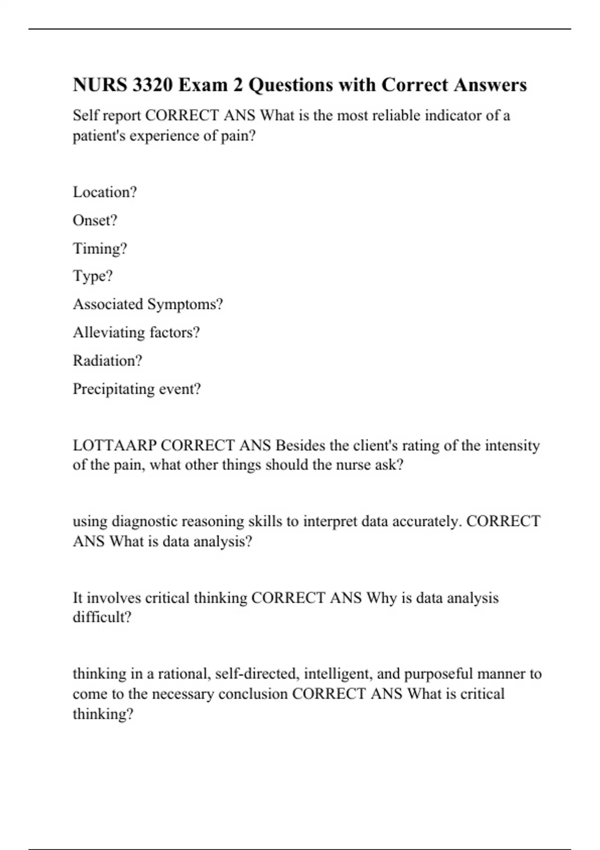 nurs 3320 exam 2 questions with correct answers