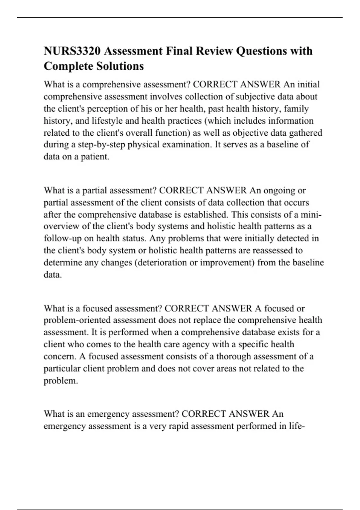 NURS3320 Assessment Final Review Questions with Complete Solutions.