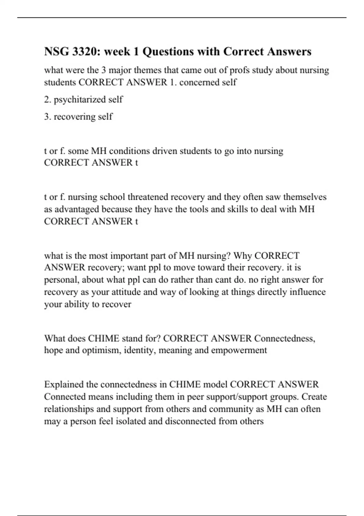 NSG 3320: week 1 Questions with Correct Answers