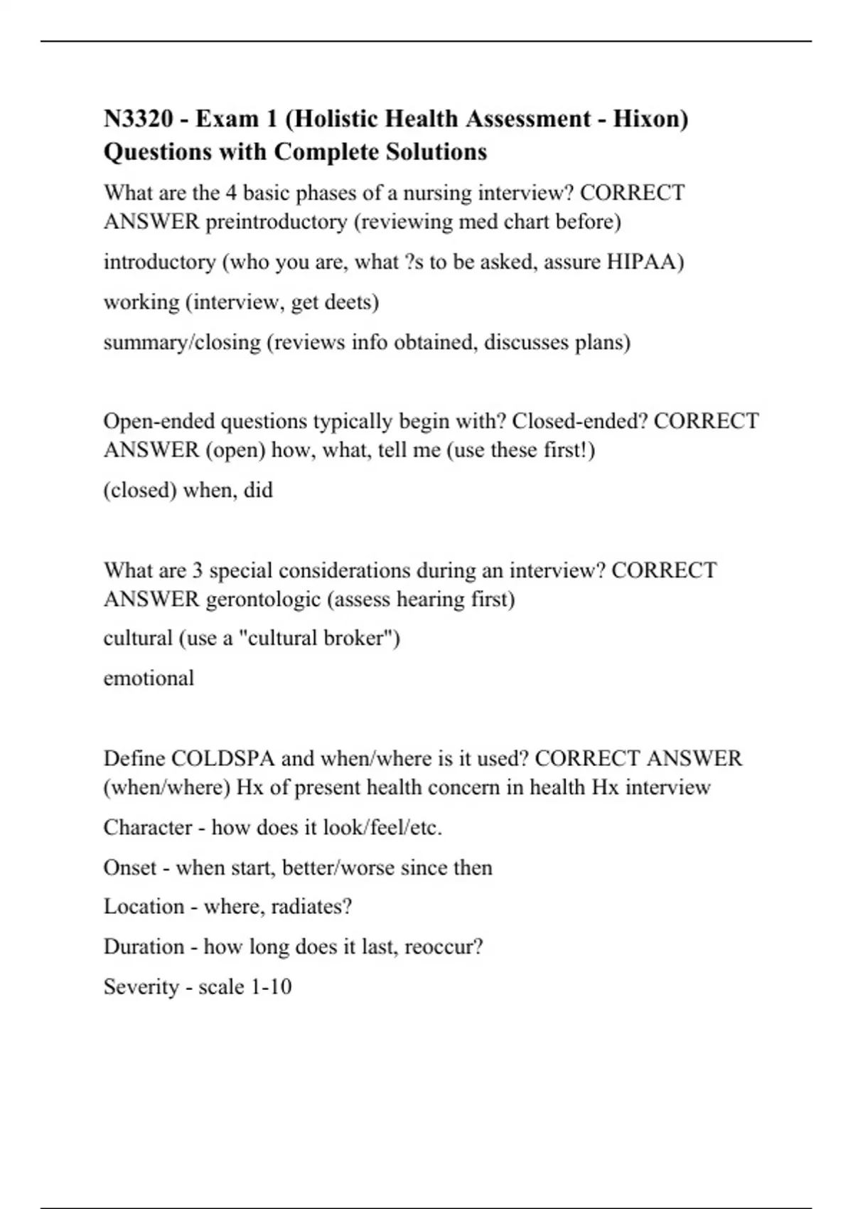 N3320 - Exam 1 (Holistic Health Assessment - Hixon) Questions with Complete Solutions