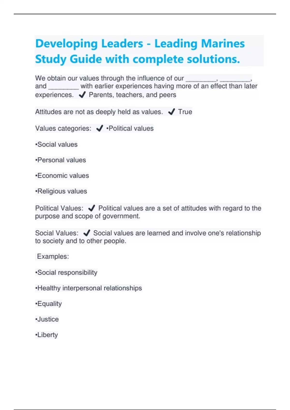Developing Leaders - Leading Marines Study Guide with complete solutions | Latest 2024/2025