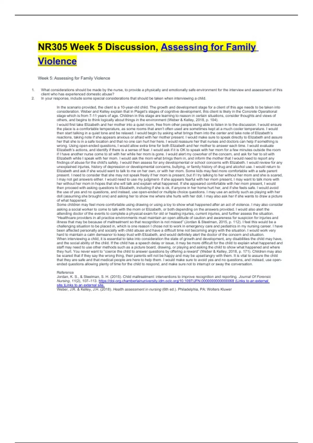 NR305 Week 5 Discussion, Assessing for Family Violence Week 5: Assessing for Family
