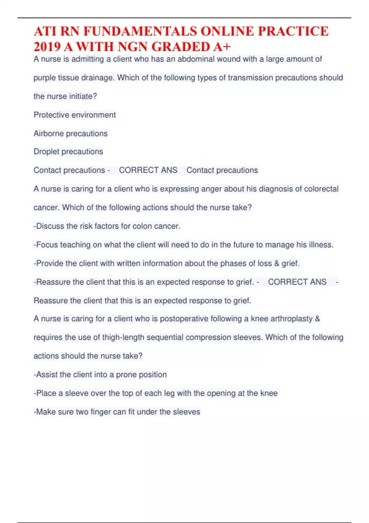 ATI RN FUNDAMENTALS ONLINE PRACTICE 2019 A WITH NGN GRADED A+