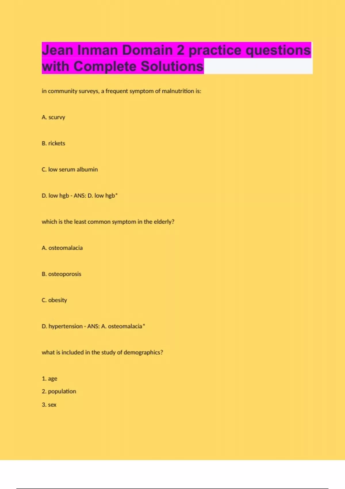Jean Inman Domain 2 practice questions with Complete Solutions