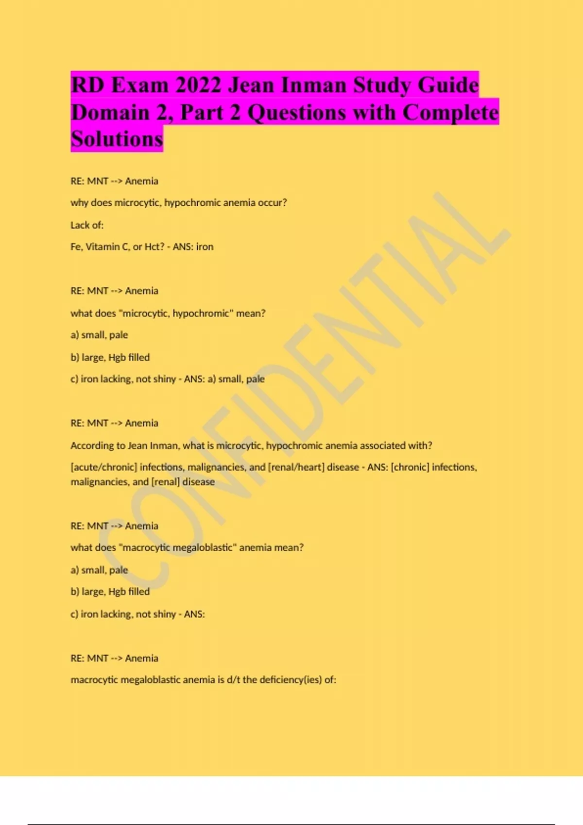 RD Exam 2022 Jean Inman Study Guide Domain 2, Part 2 Questions with Complete Solutions