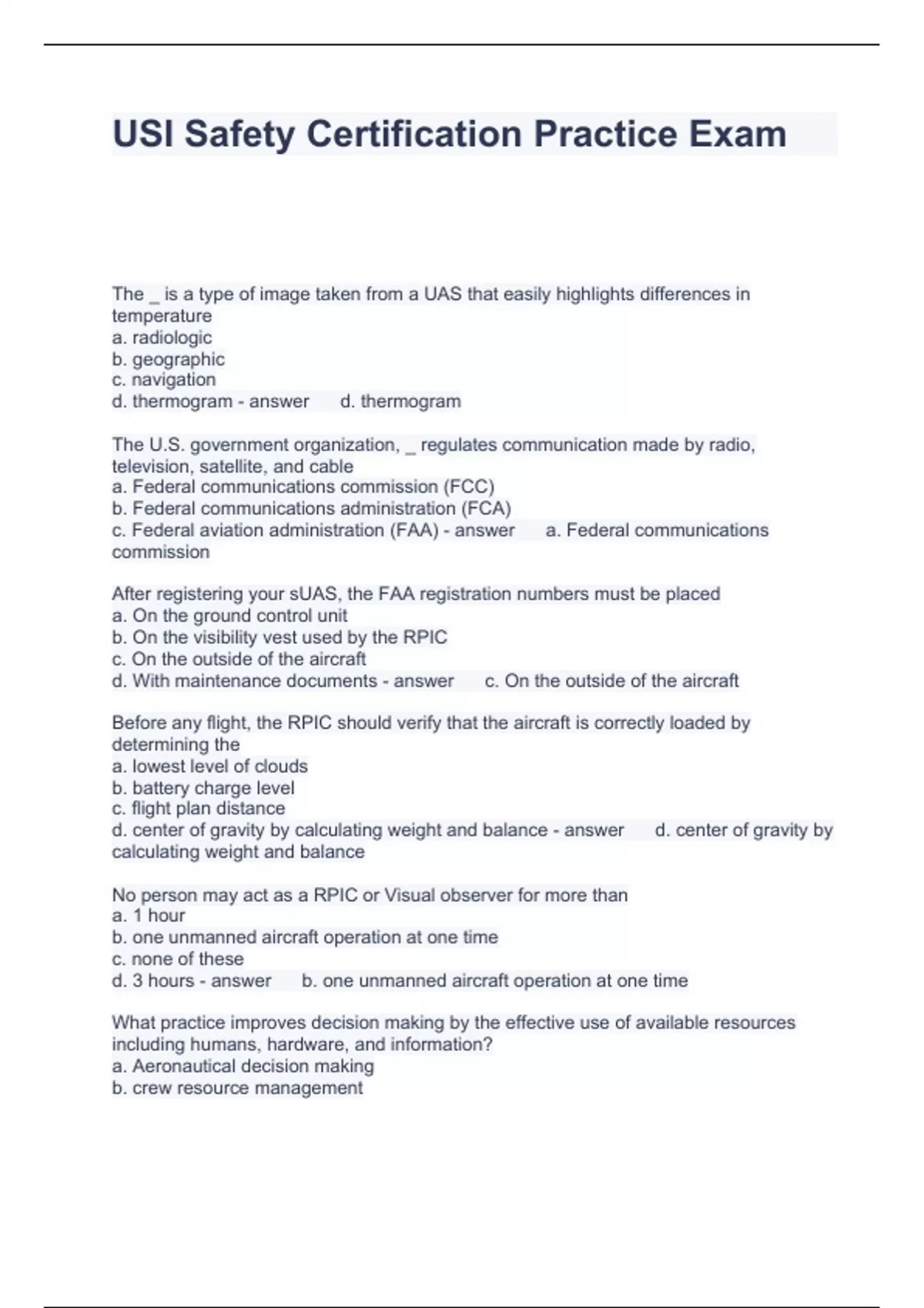 USI Safety Certification Practice Exam Questions and Answers 2024