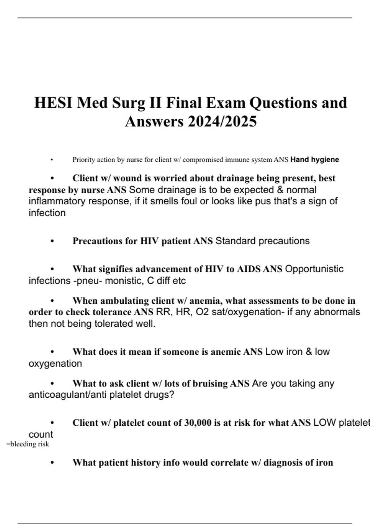 Final Exam: NSG223/ NSG 223 | Updated 2024/ 2025 Med Surg 2 Exam| Questions and Verified Answers| 100% Correct| Grade A- Herzing