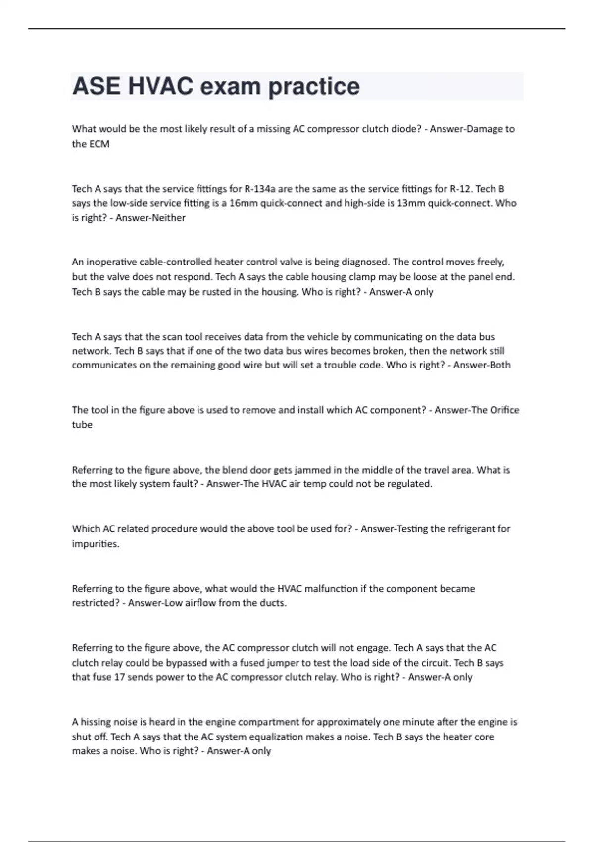 ASE HVAC exam practice Questions And Answers Rated 100% Correct!!