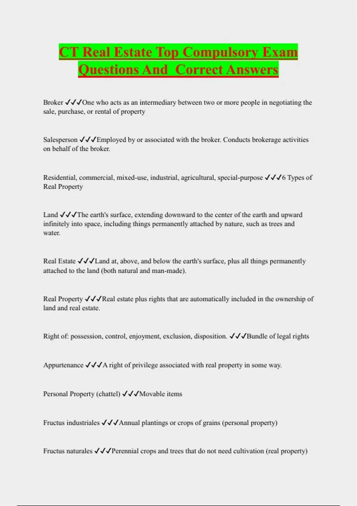 CT Real Estate Top Compulsory Exam Questions And Correct Answers