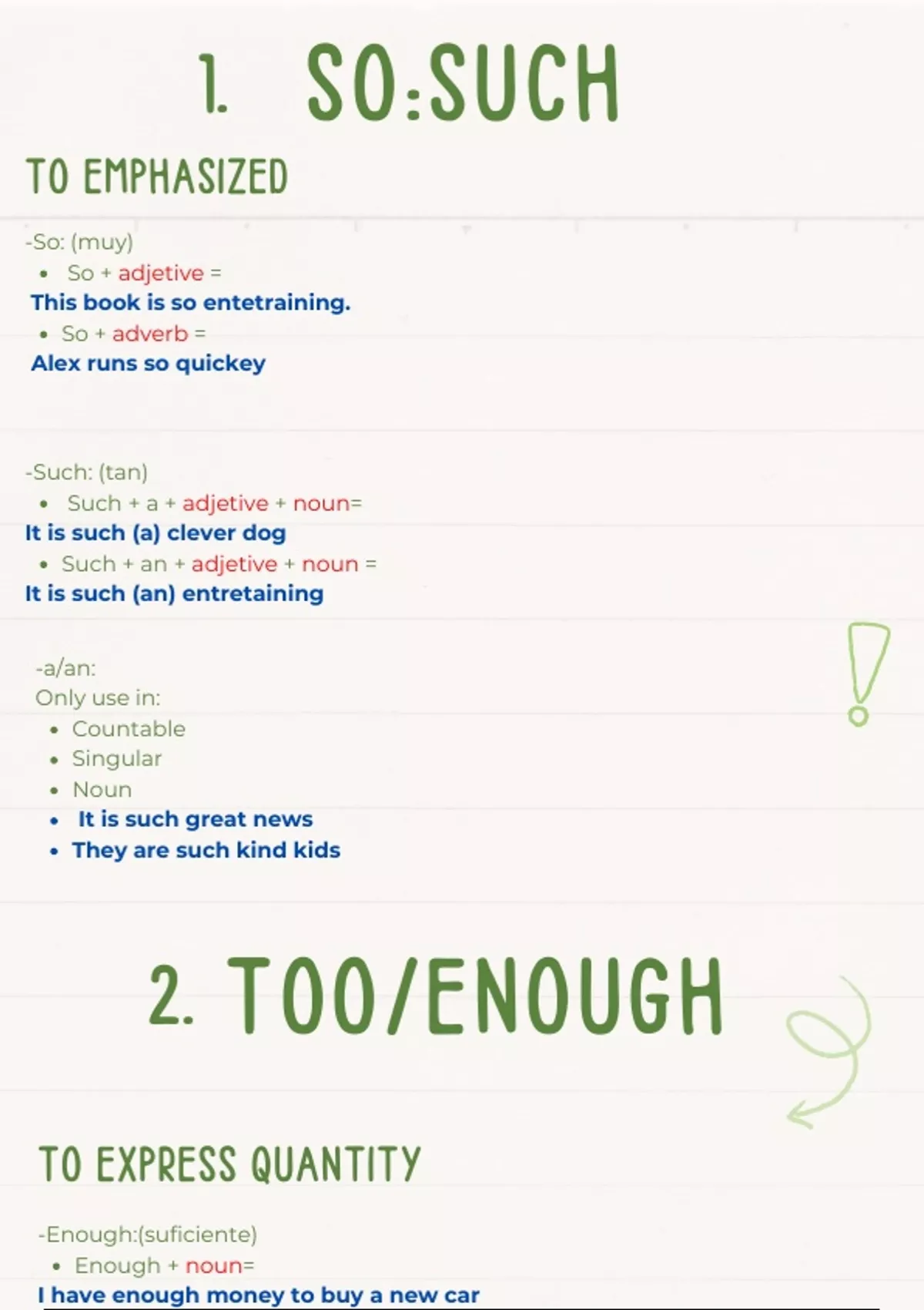 Gramática inglés, so, such, too, enough 1º bachillerato