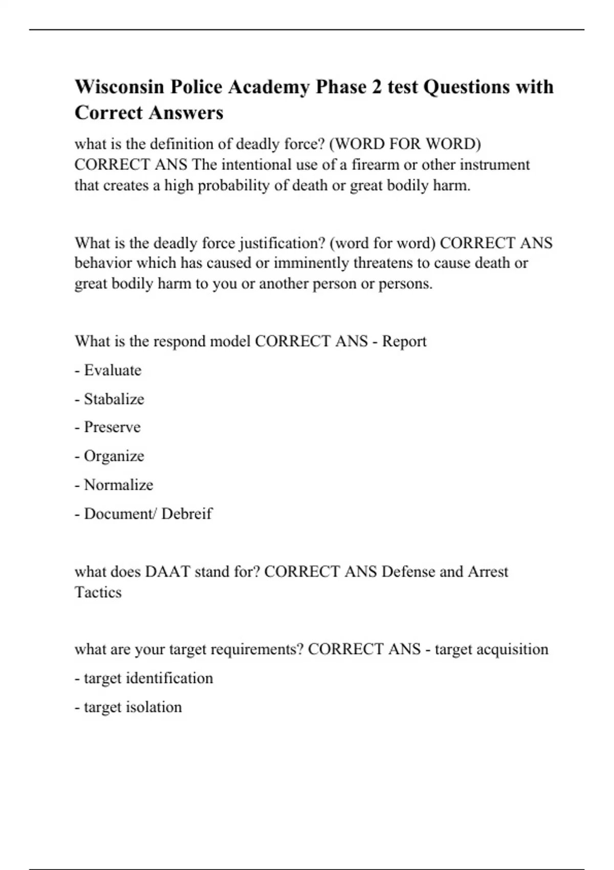 Wisconsin Police Academy Phase 2 test Questions with Correct Answers