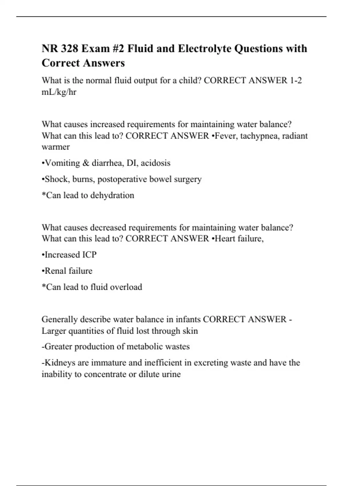 NR 328 Exam #2 Fluid and Electrolyte Questions with Correct Answers