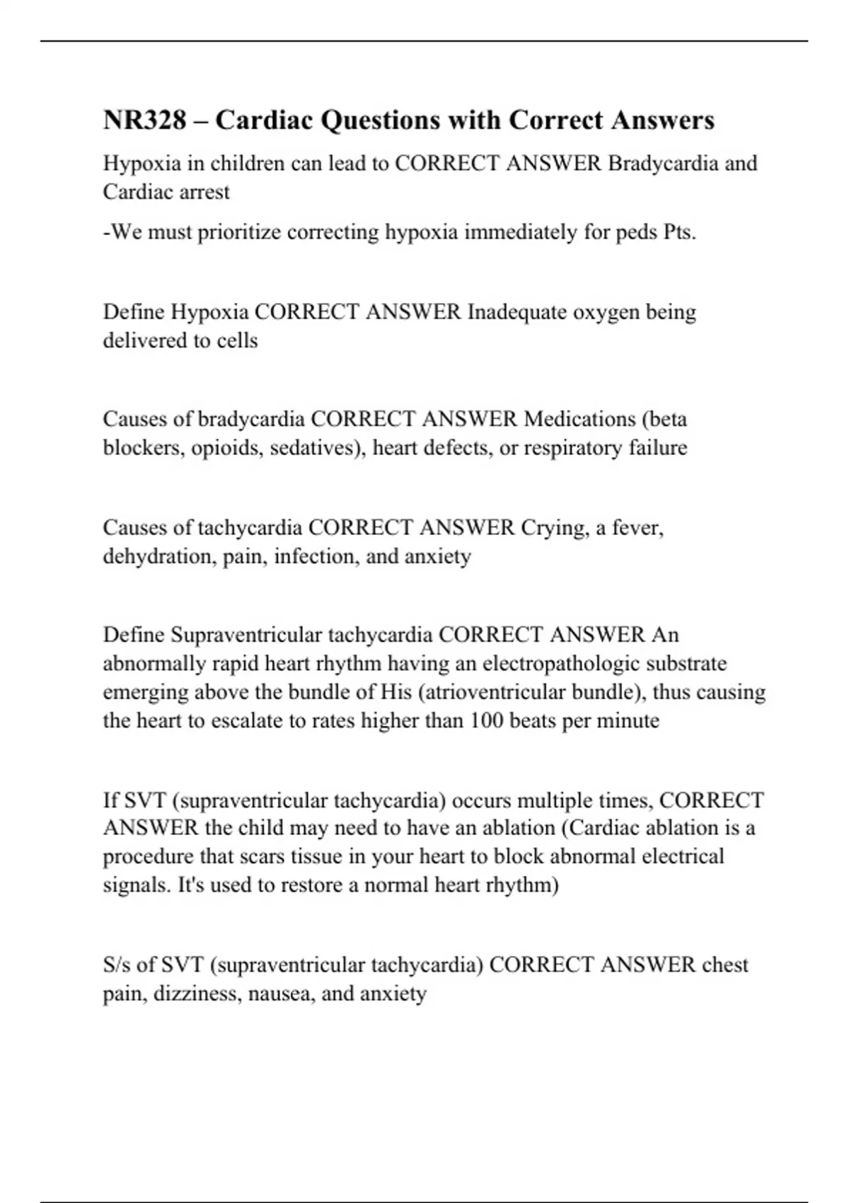 NR328 – Cardiac Questions with Correct Answers