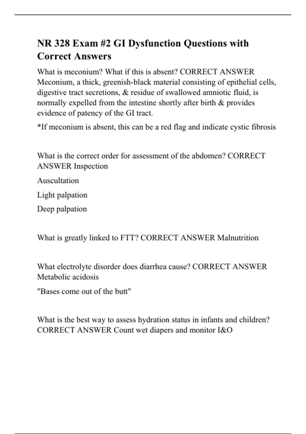 nr 328 exam 2 gi dysfunction questions with corre