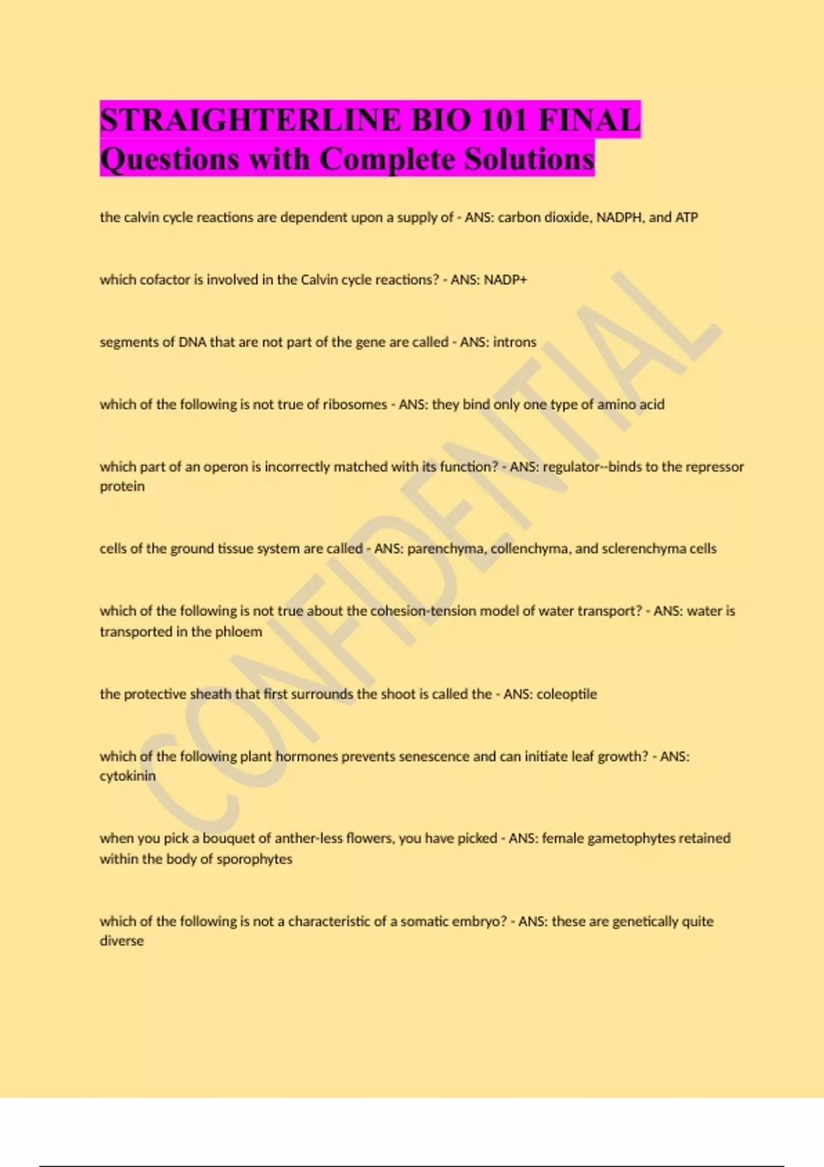 straighterline bio 101 final questions with comple