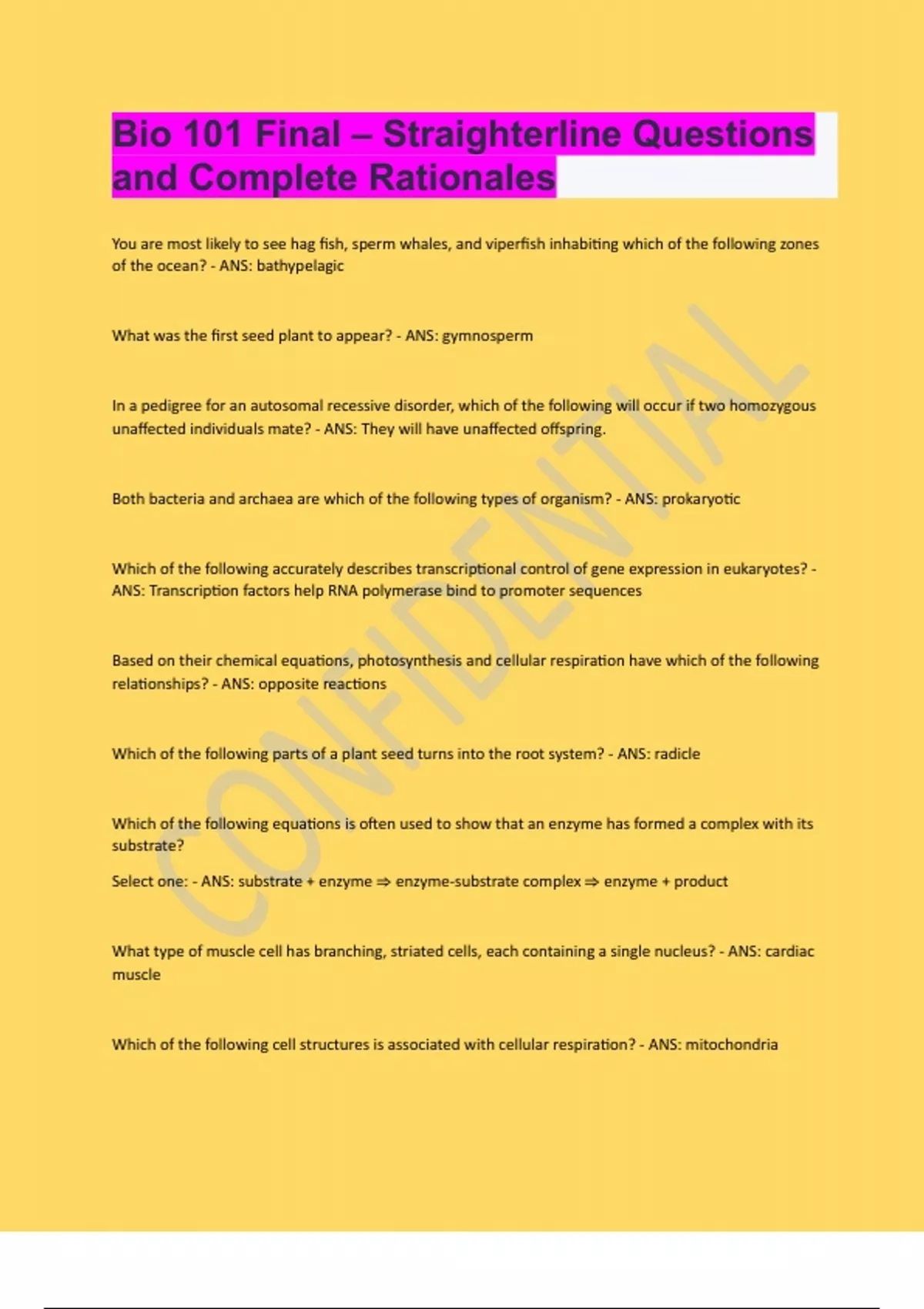 Bio 101 Final – Straighterline Questions and Complete Rationales