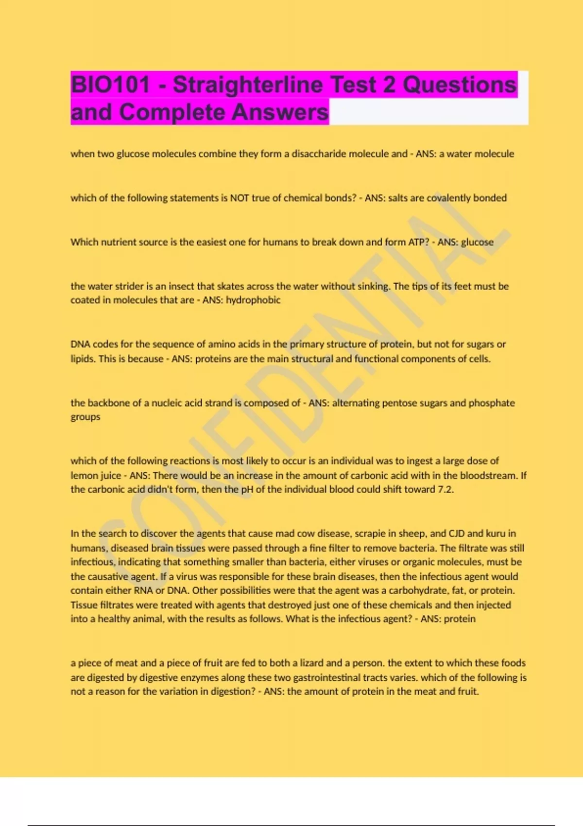 BIO101 - Straighterline Test 2 Questions and Complete Answers