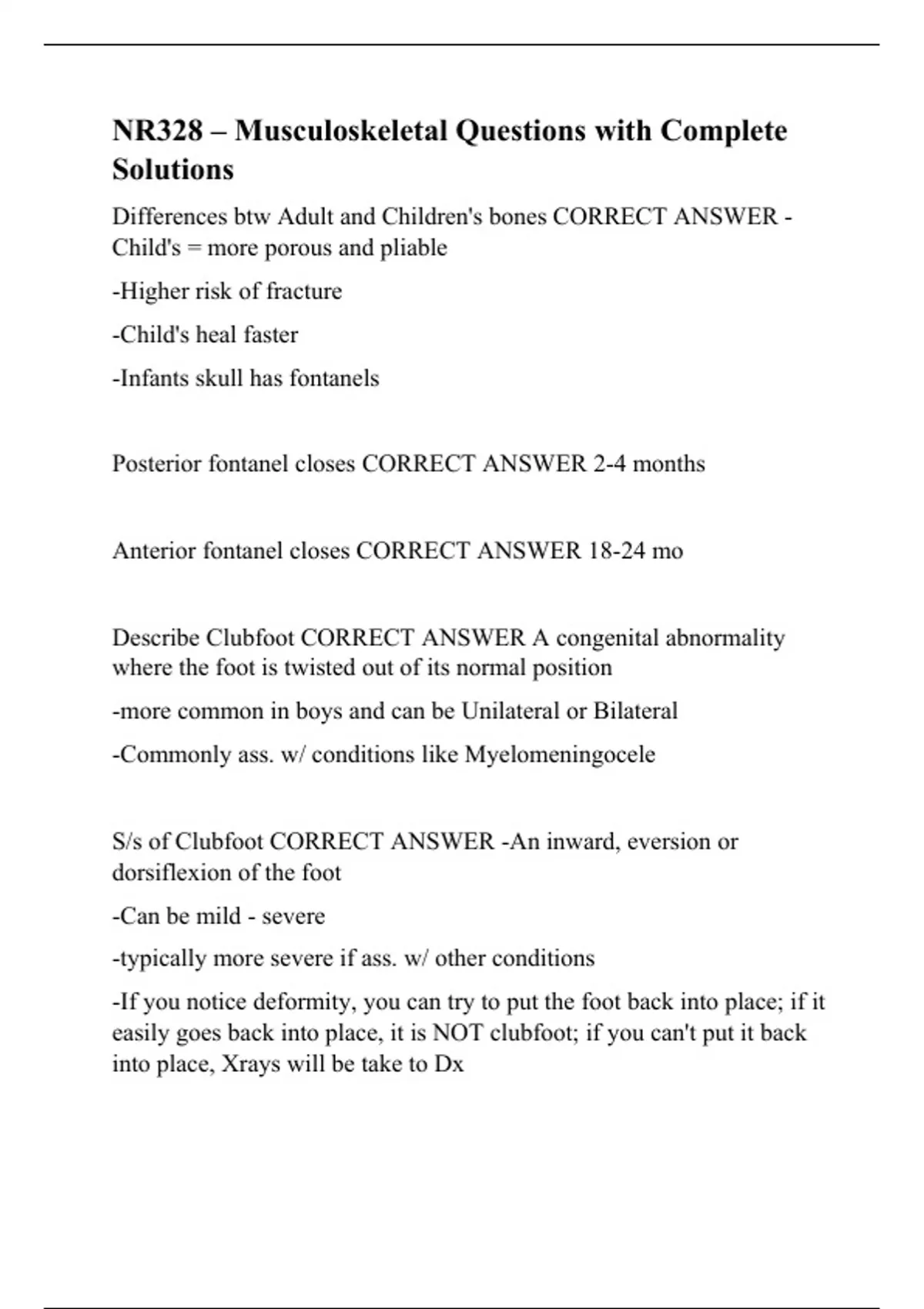 NR328 – Musculoskeletal Questions with Complete Solutions
