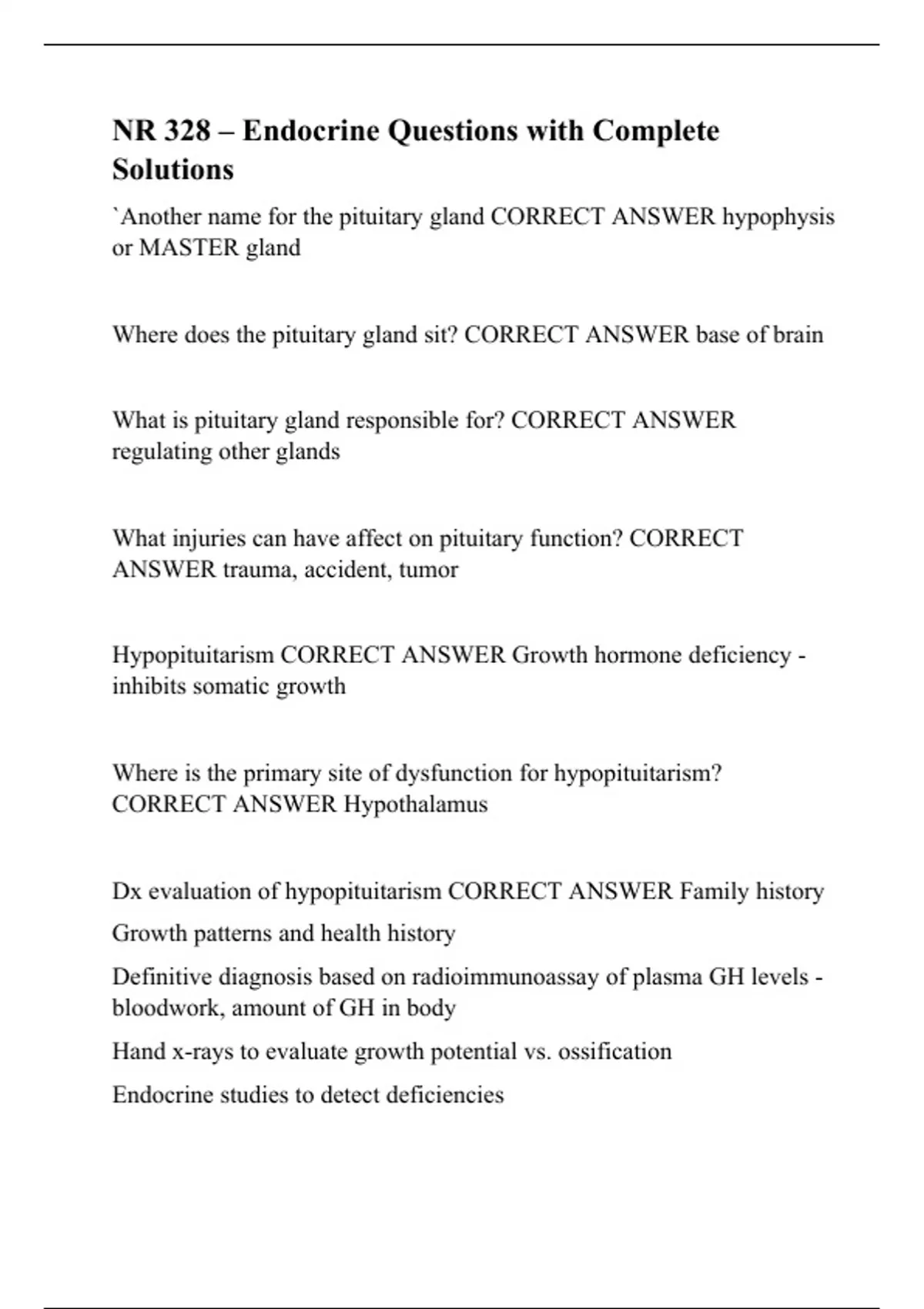 NR 328 – Endocrine Questions with Complete Solutions