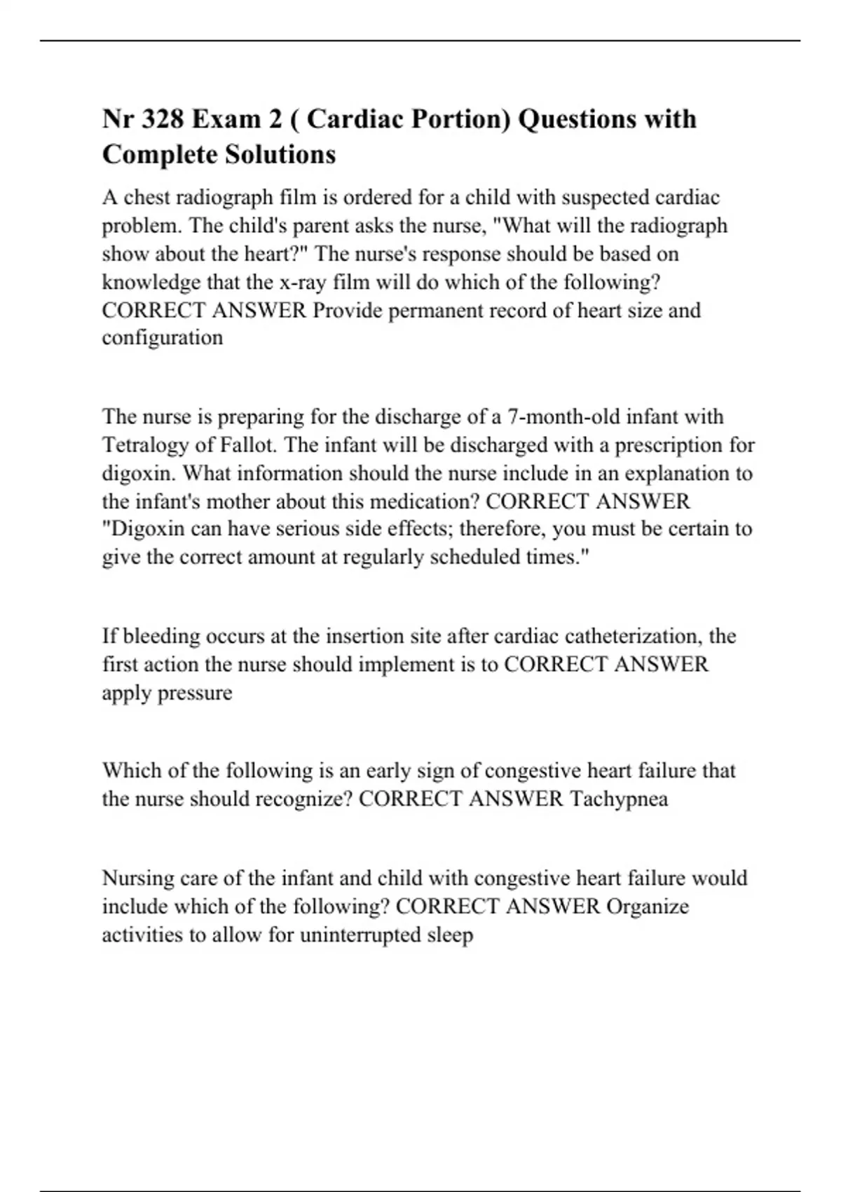nr 328 exam 2 cardiac portion questions with co