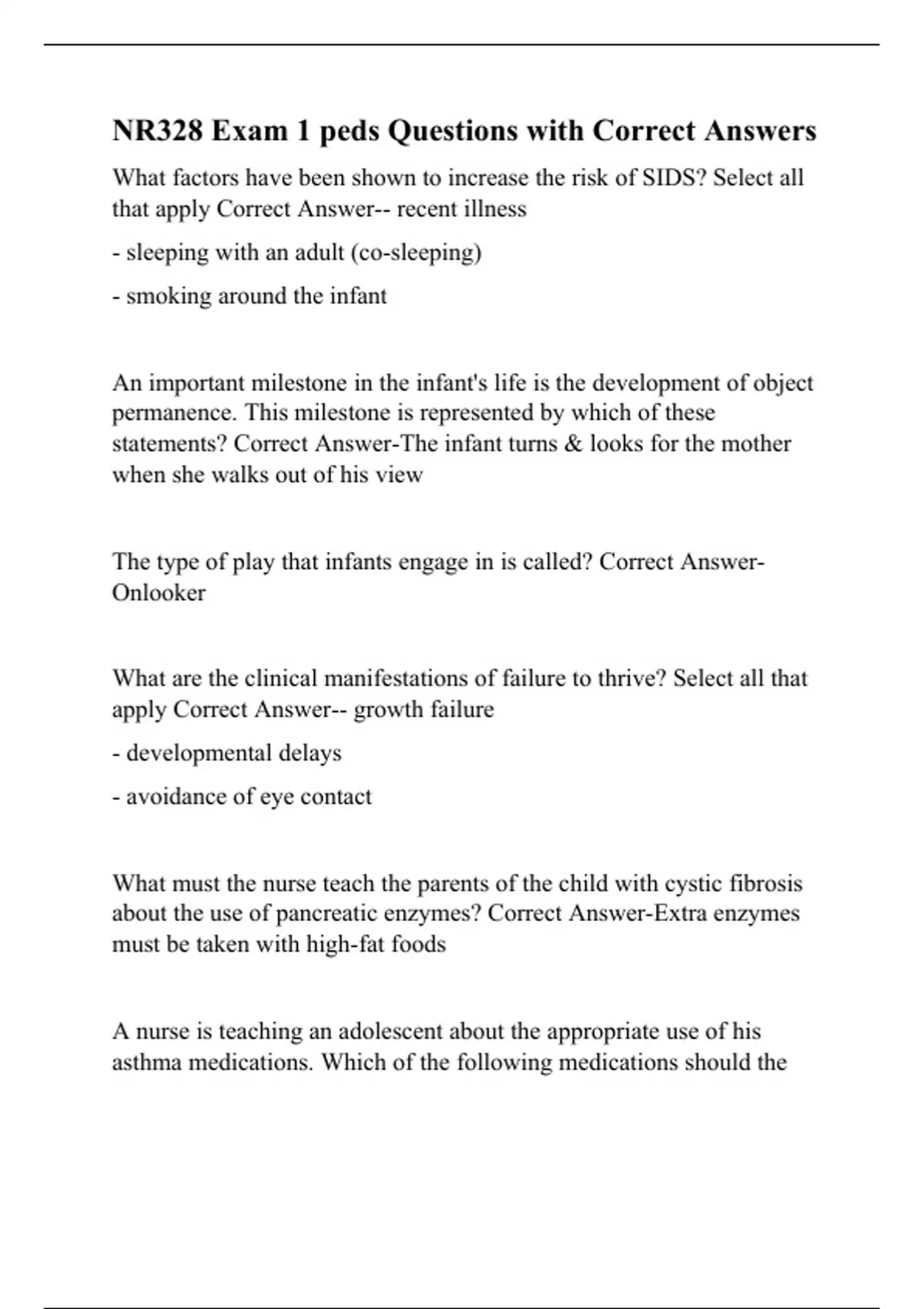 nr328 exam 1 peds questions with correct answers