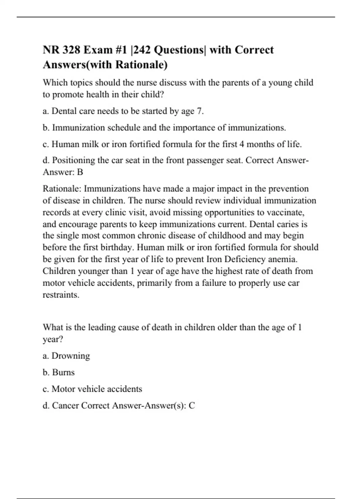 NR 328 Exam #1 |242 Questions| with Correct Answers(with Rationale)