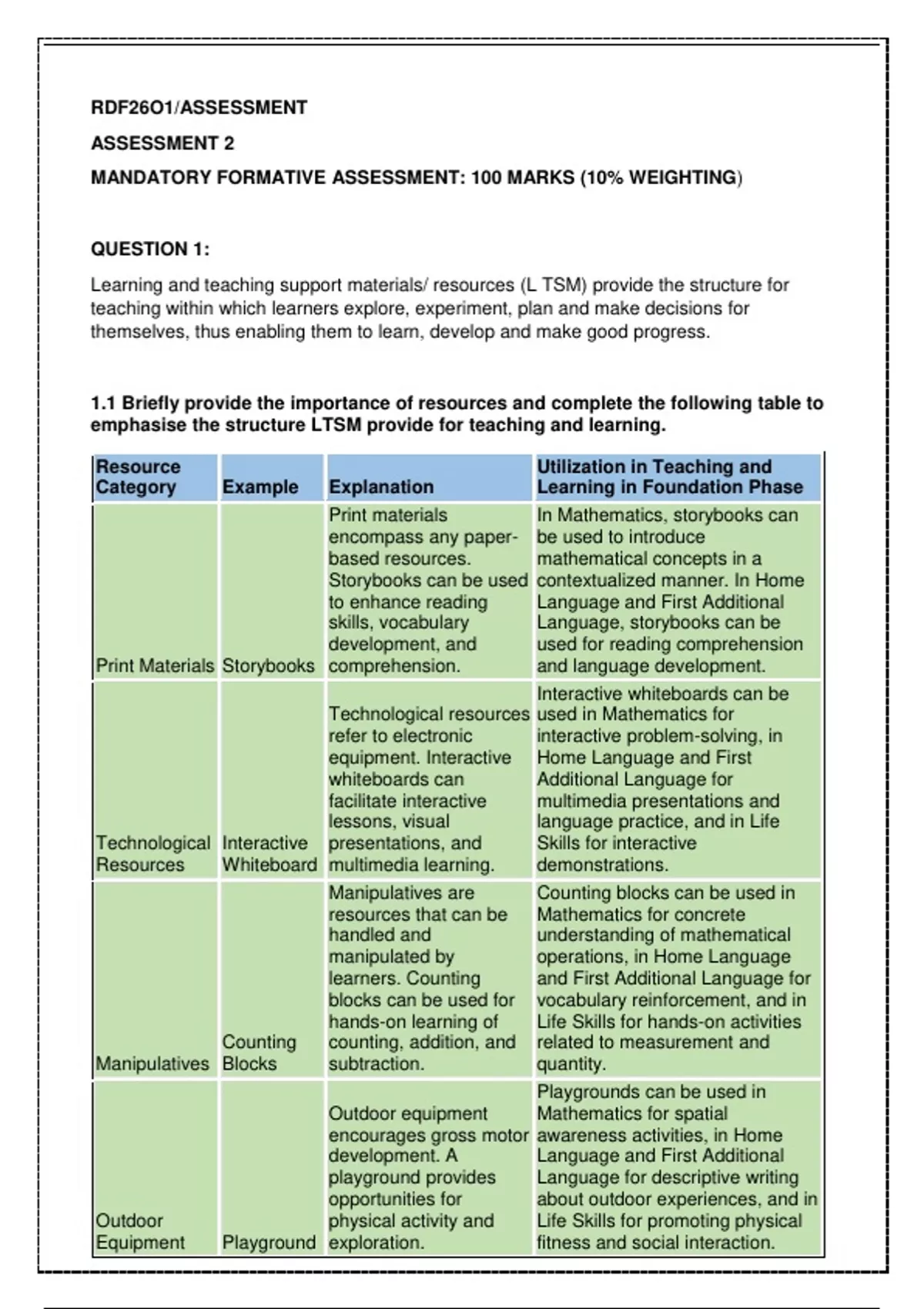 RDF26O1/ASSESSMENT