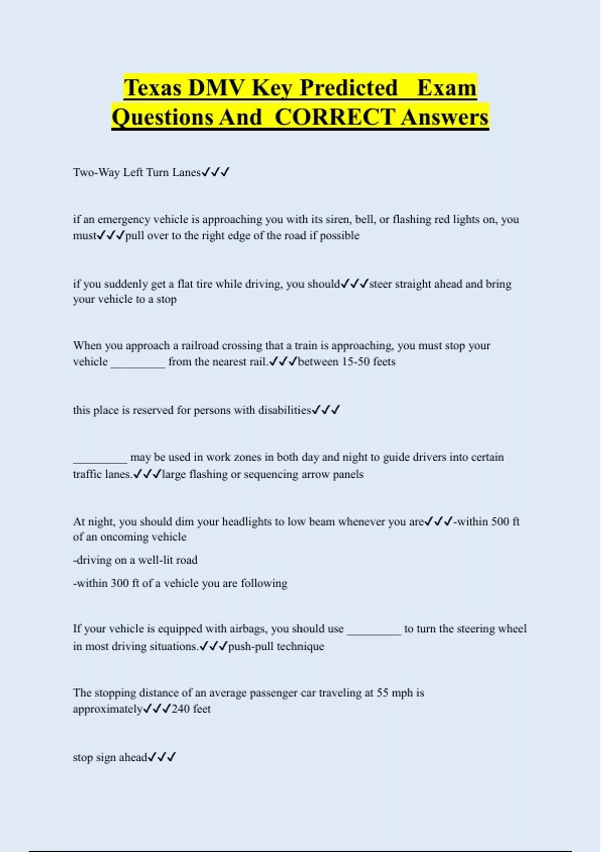 texas dmv key predicted exam questions and correc