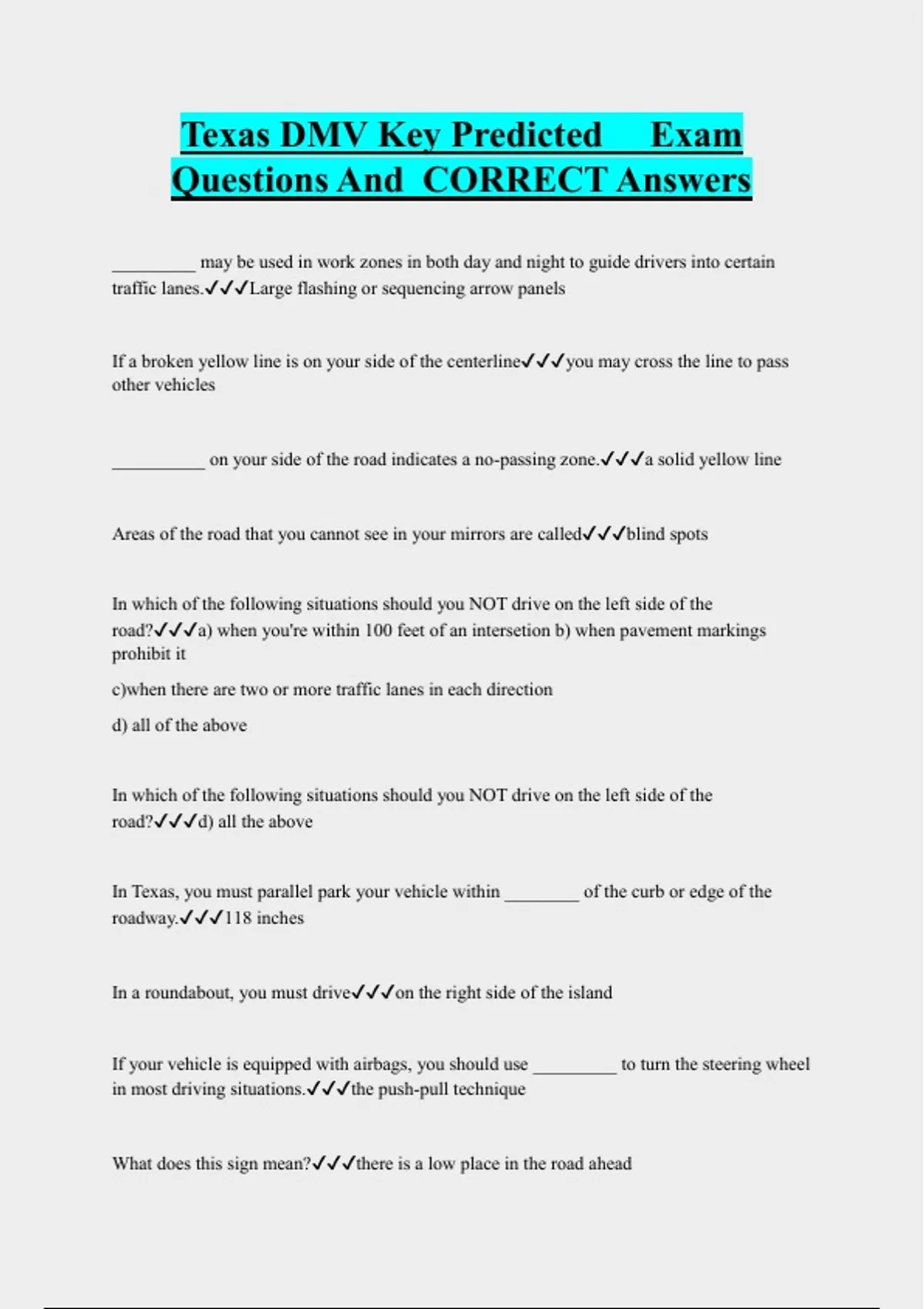Texas DMV Key Predicted Exam Questions And CORRECT Answers