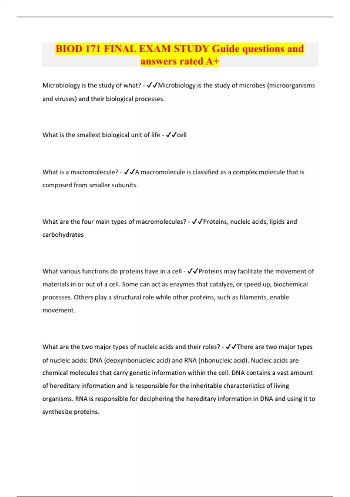 BIOD 171 FINAL EXAM STUDY Guide questions and answers rated A+