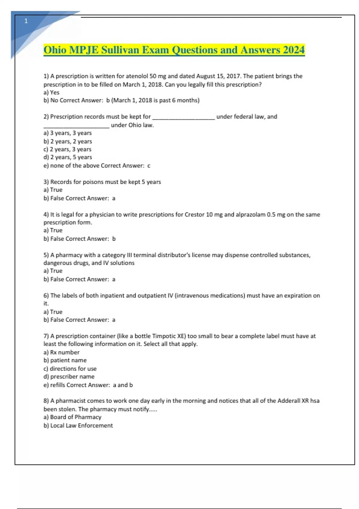 Ohio MPJE Sullivan Exam Questions and Answers 2024