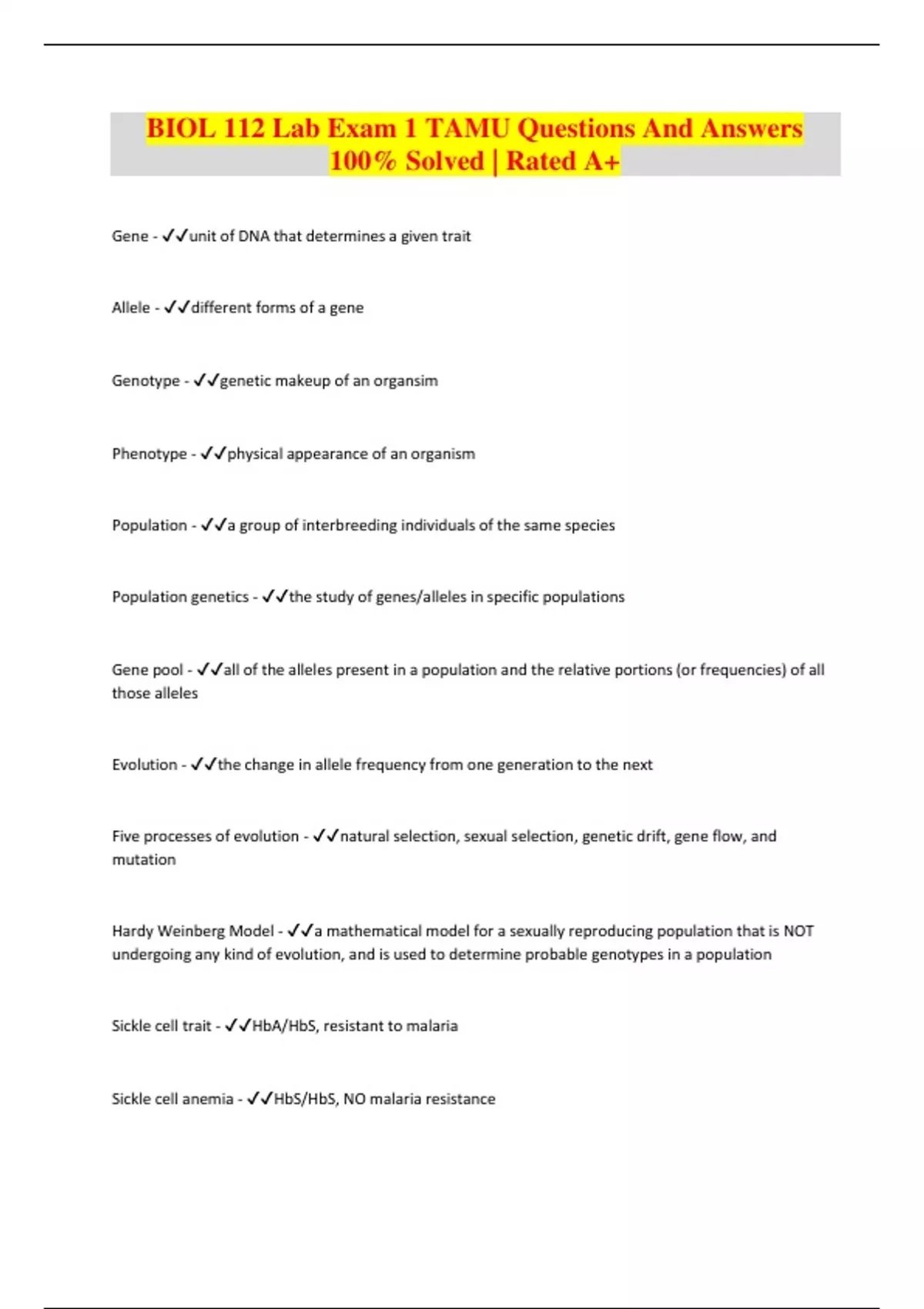 biol 112 lab exam 1 tamu questions and answers 100