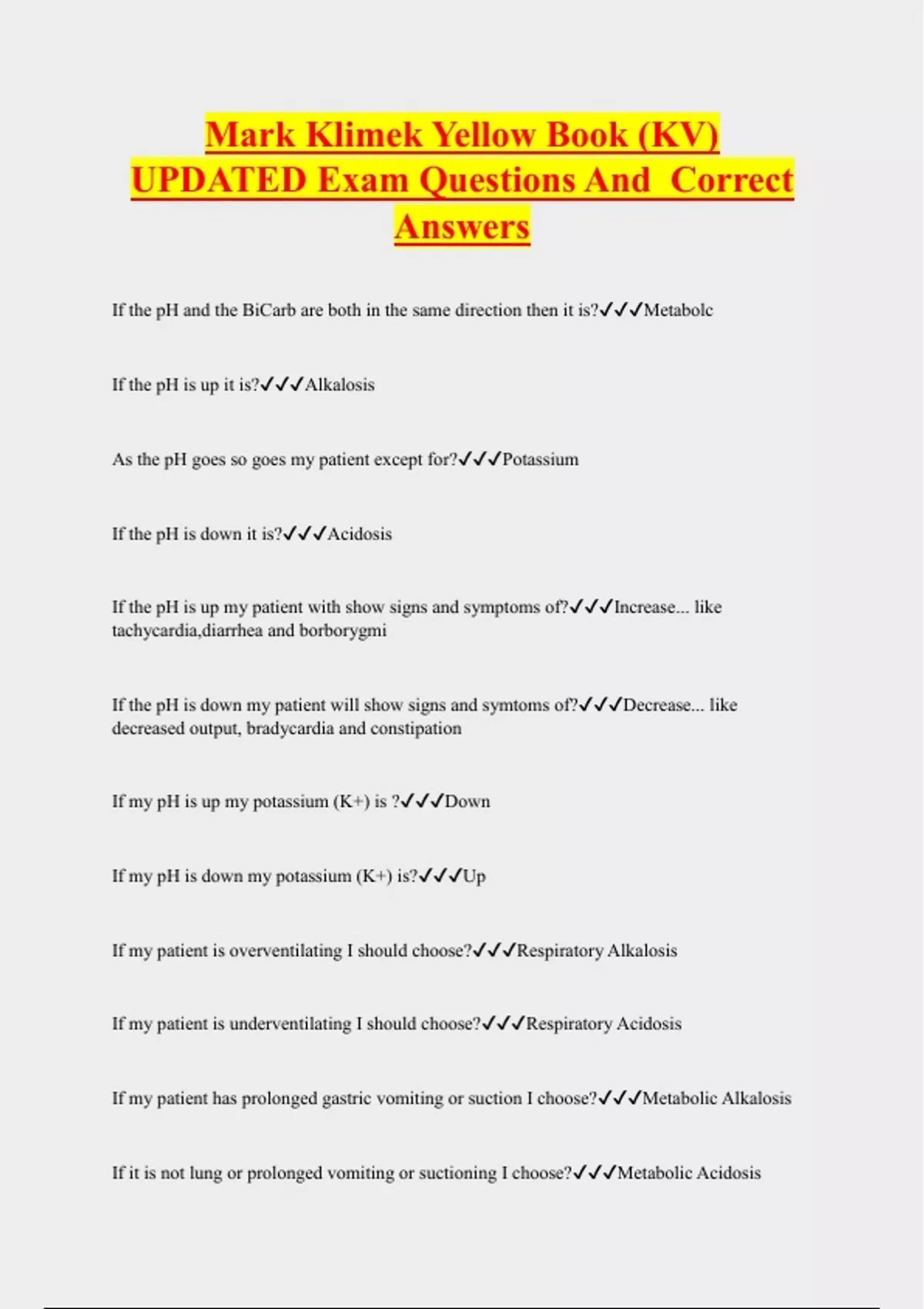 Mark Klimek Yellow Book (KV) UPDATED Exam Questions And Correct Answers