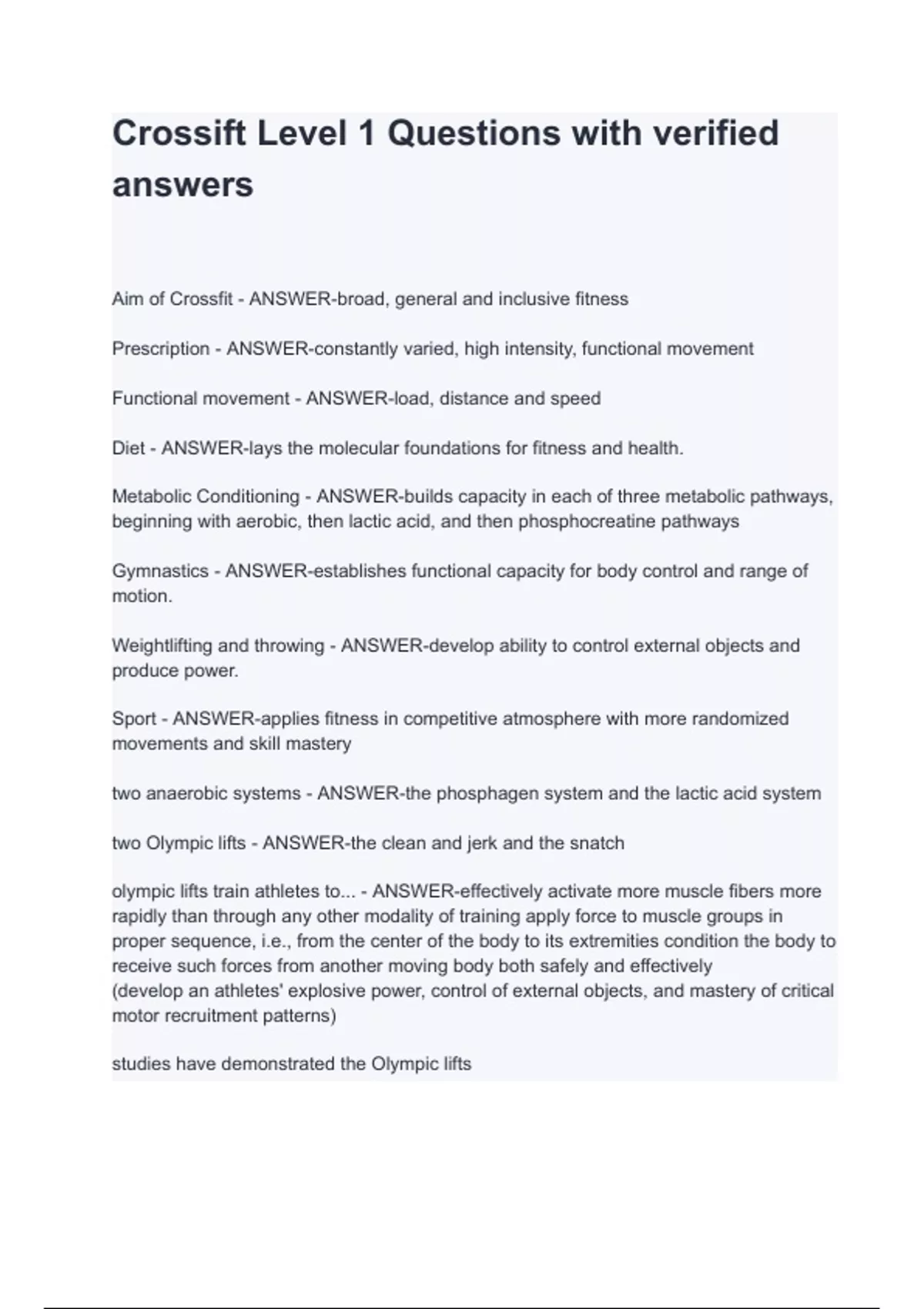 crossift level 1 questions with verified answers