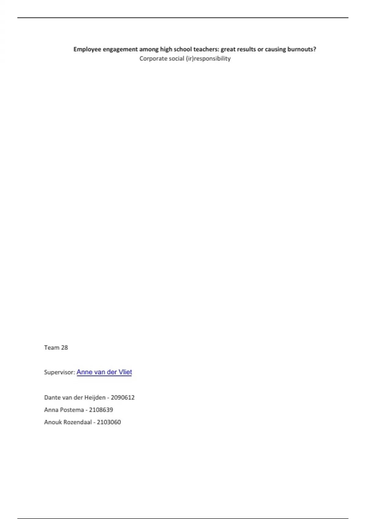 employee engagement and the chance of a burnout for a high school teacher.