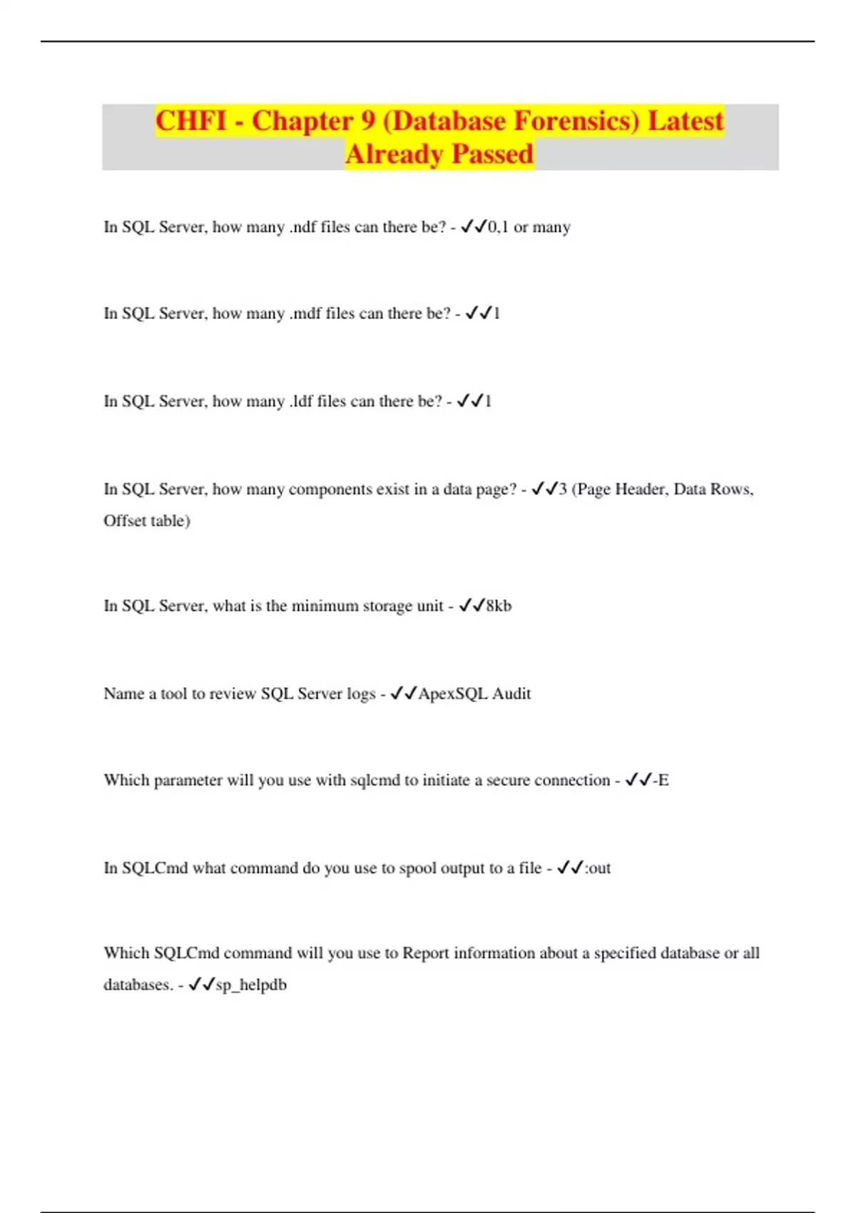 CHFI - Chapter 9 (Database Forensics) Latest Already Passed